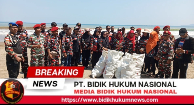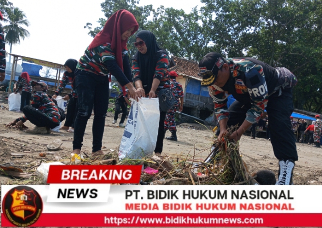 Organisasi Laskar Merah Putih (LMP) Markas Cabang Kabupaten Sukabumi menggelar kegiatan aksi bersih-bersih pantai di kawasan Pantai Citepus, Kabupaten Sukabumi, pada Senin (27/04/2026).