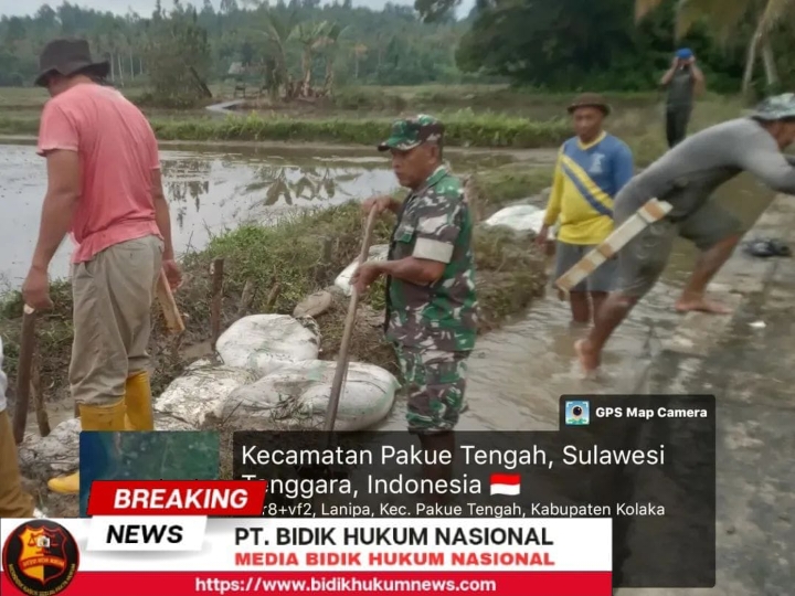 Sulawesi Tenggara – bidikhukumnews.com Dalam upaya mendukung ketahanan pangan dan membantu kelancaran sistem irigasi pertanian, Serma Haris anggota Koramil 05/Pakue Kodim 1412/Kolaka turun langsung membantu kelompok tani dalam kegiatan penggarukan serta penambalan waduk yang mengalami pendangkalan, selasa (11/11/2025).