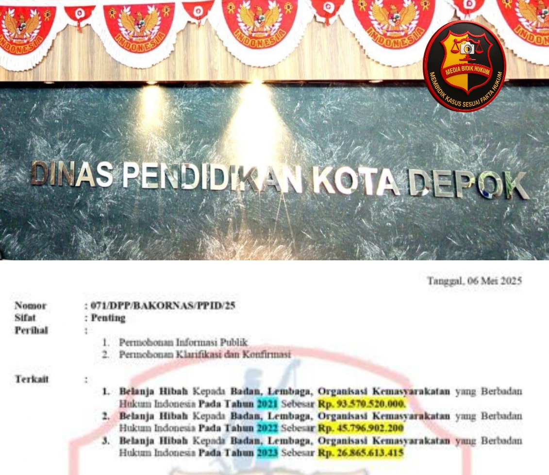 Depok – bidikhukumnews.com || Lembaga Swadaya Masyarakat Badan Anti Korupsi Nasional (LSM BAKORNAS) meminta Dinas Pendidikan Kota Depok untuk menjelaskan transparansi dan akuntabilitas pengeluaran Belanja Hibah, yang dikeluarkan oleh Dinas pendidikan Kota Depok, yang diperuntukkan kepada Badan, Lembaga, Organisasi Kemasyarakatan yang Berbadan Hukum Indonesia sejak tahun 2021 hingga tahun 2023 mencapai hingga sebesar Rp.166.233.035.615. Diantaranya yaitu sebagai berikut;