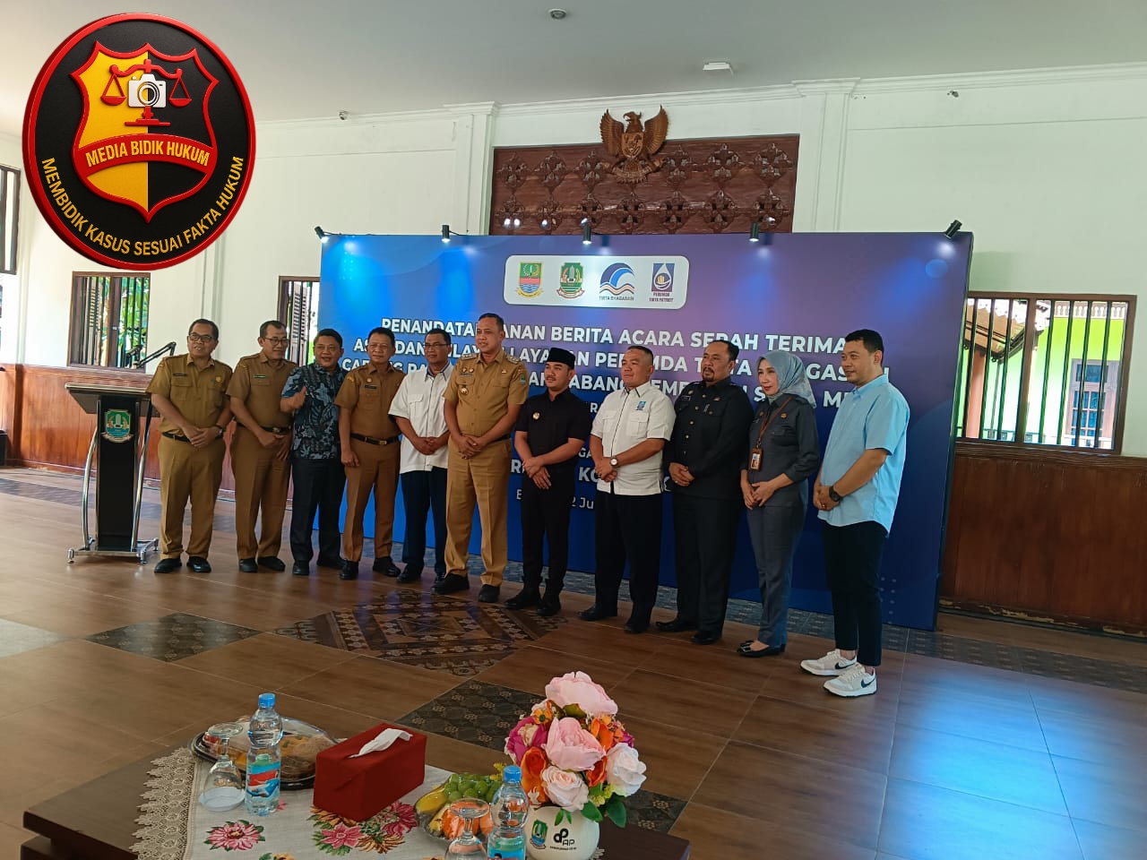 BEKASI – bidikhukumnews.com || Pemerintah Kabupaten Bekasi dan Pemerintah Kota Bekasi melakukan penandatanganan Berita Acara Serah Terima Aset dan Wilayah Layanan Perumda Tirta Bhagasasi Cabang Rawalumbu serta Cabang Pembantu Setia Mekar. Acara yang digelar di Pendopo Kota Bekasi pada, Selasa (22/07/2025) ini dihadiri oleh Dirut Tirta Patriot Bekasi, Dirut Perumda Tirta Bhagasasi, dan Sekda Kota Bekasi.