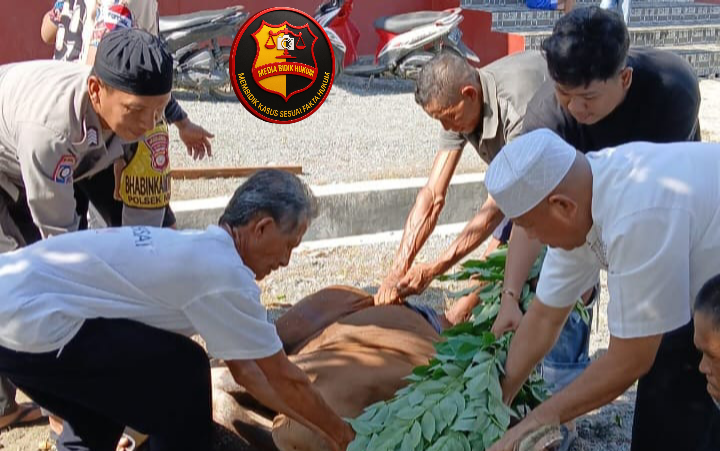 Bersinergi dengan Masyarakat, Bhabinkamtibmas Polsek Nuhon Bantu Penyembelihan Hewan Kurban