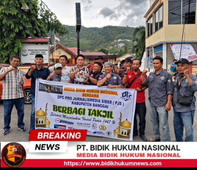 Banggai – bidikhukumnwes.com // Dewan Pengurus Cabang Pro Jurnalis Media Siber (PJS), dan Satuan Intelijen dan Keamanan (Satintelkam) Polres Banggai membagikan ratusan takjil gratis kepada pengguna jalan di depan Mapolsek Luwuk, Banggai, pada Selasa (3/3/2026). Kegiatan ini dilakukan untuk berbagi kebaikan dengan masyarakat yang sedang menjalankan ibadah puasa di bulan suci Ramadhan.