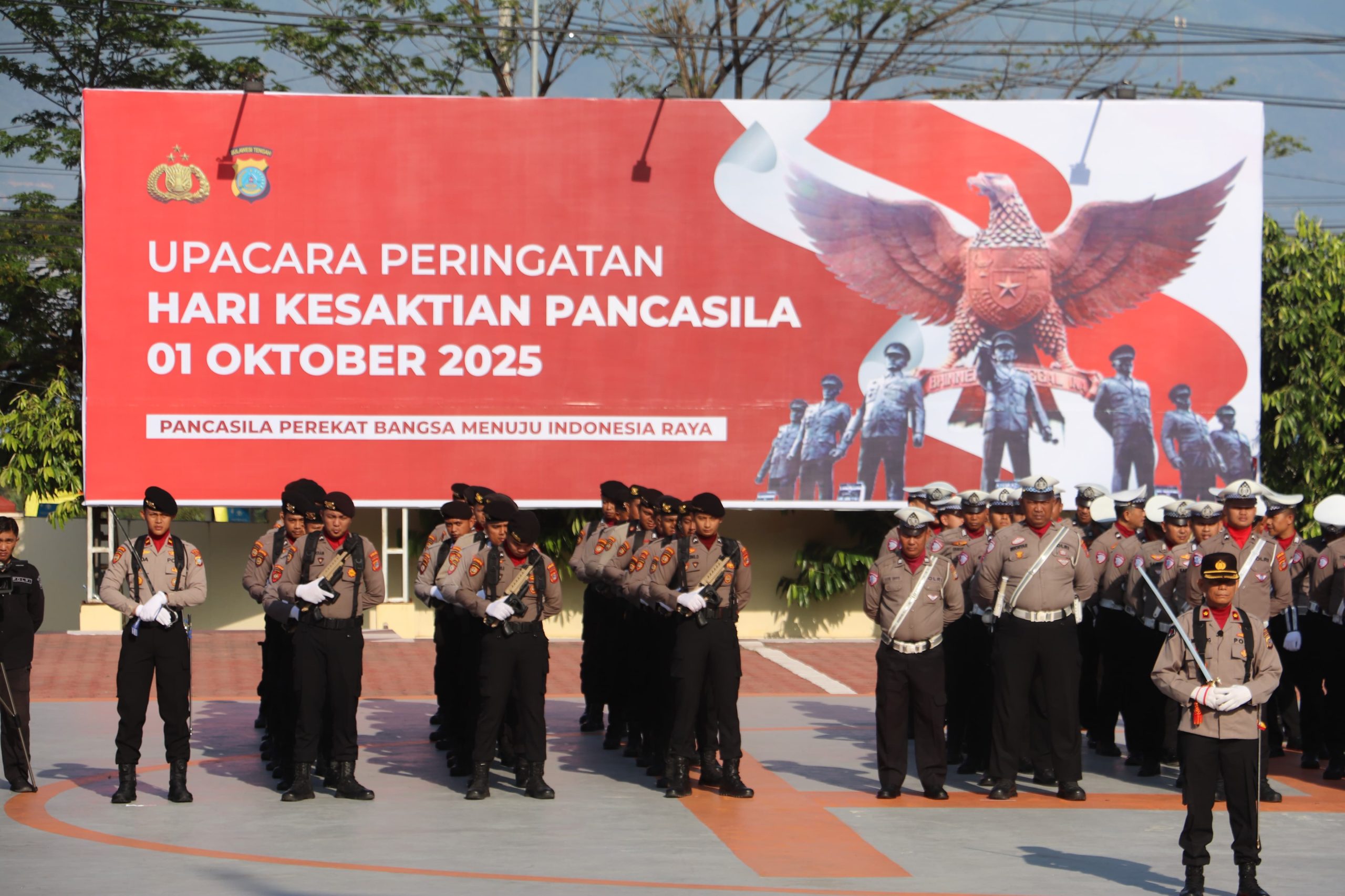 Polda Sulawesi Tengah menggelar upacara peringatan Hari Kesaktian Pancasila di lapangan apel Mako Polda Sulteng, Rabu (1/10/2025). Kapolda Sulteng melalui Wakapolda Sulteng Brigjen Pol Dr Helmi Kwarta Kusuma Putra Rauf memimpin langsung upacara.