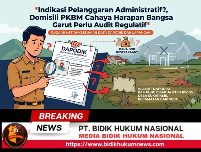 Garut Caringin – bidikhukumnews.com // Dugaan ketidaksesuaian data kembali mencuat di sektor pendidikan nonformal Kabupaten Garut. PKBM Cahaya Harapan Bangsa yang tercatat beralamat di Kampung Cisarua RT 01 RW 05, Desa Sukarame, Kecamatan Caringin, dilaporkan tidak ditemukan keberadaannya saat dilakukan penelusuran lapangan berdasarkan alamat yang tertera dalam Data Pokok Pendidikan (Dapodik). Minggu 01/03/2026.