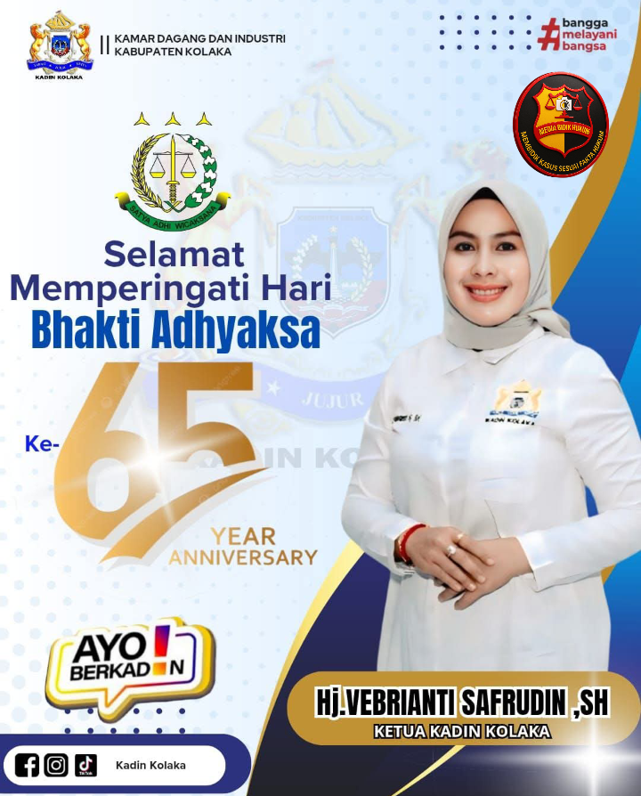 Kolaka SulawesiTenggara – bidikhukumnews.com || Kamar Dagang dan Industri (Kadin) Kabupaten Kolaka mengucapkan selamat memperingati Hari Bhakti Adhyaksa ke-65. Pada 22 Juli 2025.