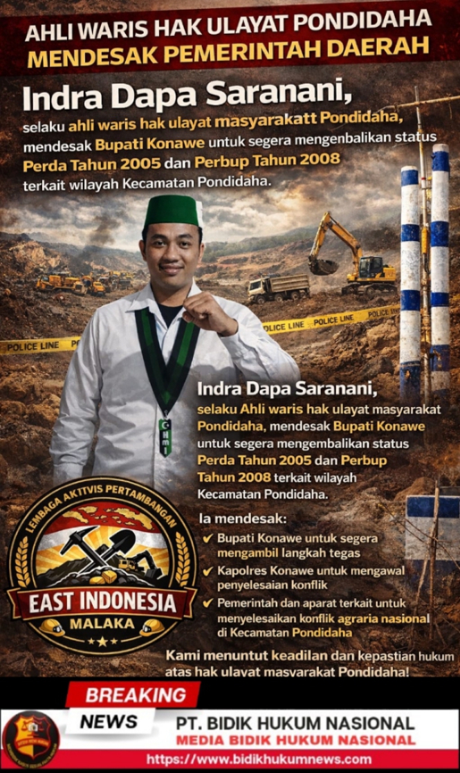 Selain itu, pihaknya juga mendesak Kapolres Konawe untuk segera mengambil langkah persuasif dengan berkoordinasi bersama Pemerintah Daerah Kabupaten Konawe guna memfasilitasi para ahli waris hak ulayat Pondidaha.