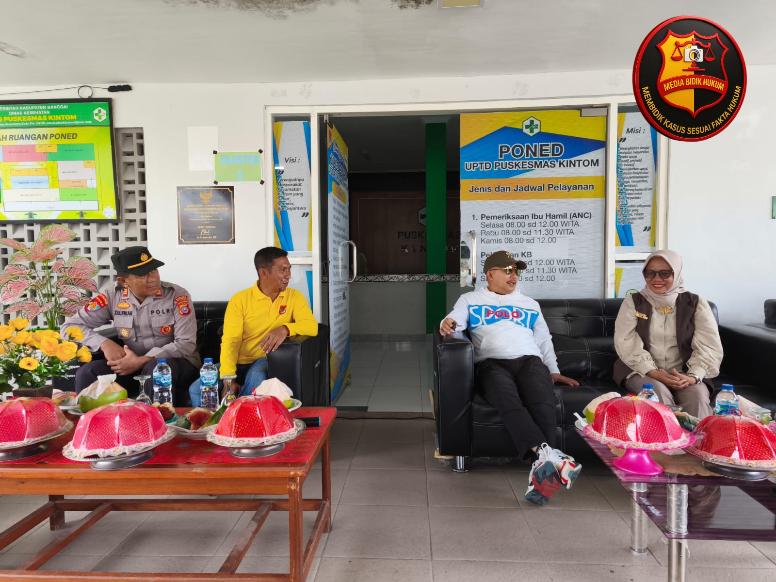 Banggai – bidikhukumnews.com || Kapolsek Kintom, AKP Muh. Zulfikar, SH mendampingi Bupati Banggai Amirudin Tamoreka melaksanakan kunjungan kerja di UPTD Puskesmas Kintom, Desa Samadoya, Sabtu (26/7/2025).