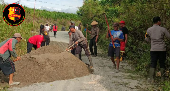Kapolsek Lore Utara Gotong Royong bersama Warga, Timbun Bahu Jalan Trans Napu–Poso Amblas