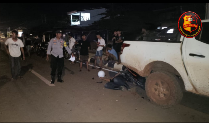 Kecelakaan Tunggal Pengendara Sepeda Motor Menabrak Mobil parkir di badan jalan