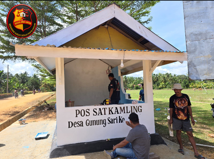 Kegiatan Perbaikan dan Pengecatan Pos Satkamling Gembira Desa Gunung Sari binaan Polsek Watubangga