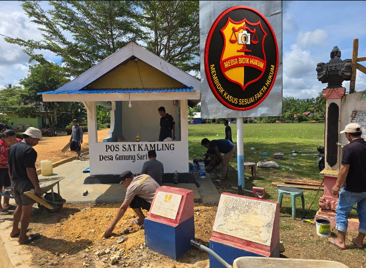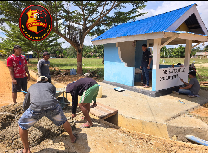 Kapolsek Watubangga IPDA HENDRA bersama Personil Polsek Watubangga, Kades Gunung Sari Bapak. Pujianto Ruslan dan masyarakat Desa Gunung Sari melaksanakan kegiatan perbaikan dan pengecatan Pos Satuan Keamanan Lingkungan (Satkamling) Gembira Desa Gunung Sari.