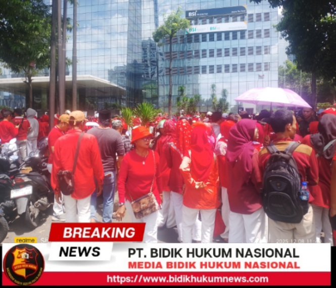 Kantor pusat BSI (Bank Syariah Indonesia) yang berlokasi di Jalan Gatot Subroto Kelurahan Karet Semanggi, Kecamatan Setiabudi, Kota Jakarta Selatan, digeruduk puluhan juta masyarakat yang berpakaian serba merah putih untuk mewakili bangsa Indonesia demi mendapatkan dana hibah untuk kepentingan pemerintah dan masyarakat.