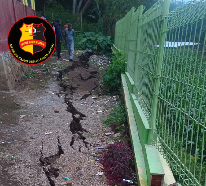 Garutbidikhukumnews.com || Hujan deras yang mengguyur wilayah Kecamatan Pasirwangi sejak senin siang hingga malam menyebabkan terjadinya pergeseran tanah di wilayah Kampung Ragamukti, Desa Sirnajaya. Akibat kejadian tersebut, pagar penahan tebing (TPT) SDN 2 Sirnajaya terancam ambruk. Selasa (27/05/2025).