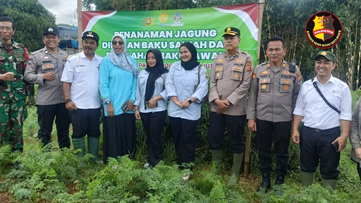Dalam rangka mendukung program ketahanan pangan pemerintah, jajaran Polres Cianjur bersama Pemerintah Desa Ciherang melaksanakan kegiatan penanaman jagung. Kegiatan yang berlangsung di Desa Ciherang, Kecamatan Pacet, Kabupaten Cianjur pada Rabu (1/10/2025) ini diharapkan dapat memotivasi masyarakat untuk mengoptimalkan lahan pertanian.