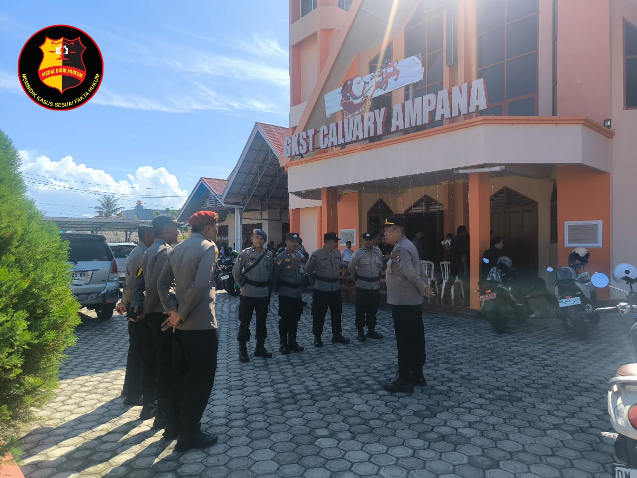 TOUNA – bidikhukumnews.com || Personel Polres Tojo Una Una beserta Polsek Jajaran melaksanakan Pengamanan Gereja dalam rangka Ibadah Memperingati Hari Paskah yang jatuh pada tanggal 18 April 2025.