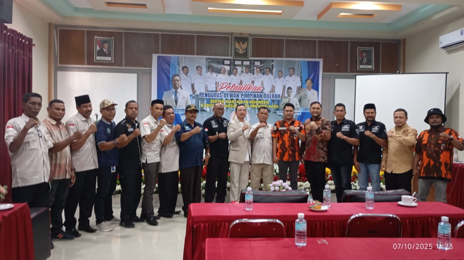 Acara prosesi pelantikan pengurus Sekretariat bersama Wartawan Indonesia (SWI) Kabupaten Nagan Raya pada Selasa (7/10/2025) terlaksana dengan lancar dan sukses.