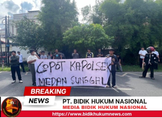 Medan – bidikhukumnews.com Lembaga Pemberdayaan Masyarakat (LPM) Kecamatan Sunggal bersama sejumlah mahasiswa menggelar aksi unjuk rasa di depan Polrestabes Medan, Rabu (19/11/2025), menuntut pencopotan Kapolsek Medan Sunggal, Kompol Bambang G. Hutabarat, S.H., M.H. Mereka menilai Kapolsek tidak mampu menangani kasus pengeroyokan terhadap Ketua LPM Sunggal.