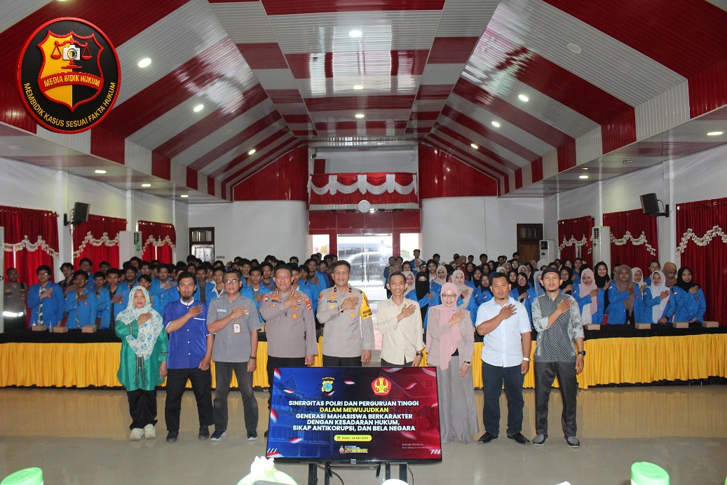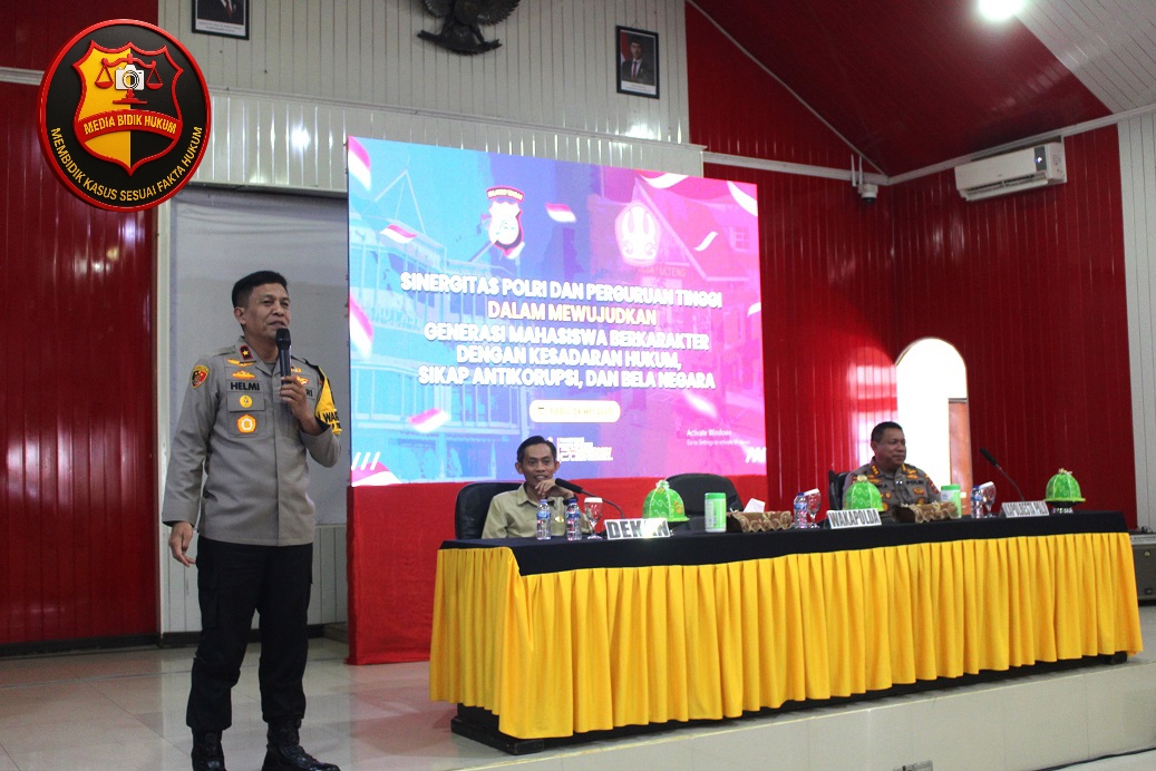 Dalam pemaparannya, Wakapolda menekankan pentingnya peran mahasiswa sebagai generasi penerus bangsa yang memiliki kesadaran hukum, semangat anti korupsi, dan semangat bela negara.